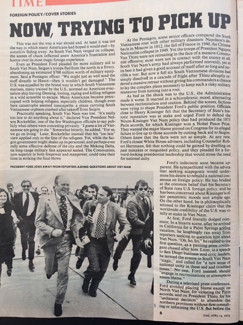 Kính thưa quý độc giả,Tuần lễ này đánh dấu tuần đầu kỷ niệm Tháng Tư Đen 1975. DĐTC không có ý lập lại những quan điểm của dân tỵ nạn chúng ta về biến cố này vì đã có quá nhiều bài viết giá trị đã được phổ biến. Thay vào đó, DĐTC xin phép được lật lại trang sử cũ, coi lại những hình ảnh và bài viết của tạp chí TIME, dù sao cũng là tập san uy tín nhất của Mỹ thời điểm đó. Đây là những tài liệu lịch sử, ta xem lại, coi như là cách nhớ lại một chuyện không vui nhưng cần nhớ.